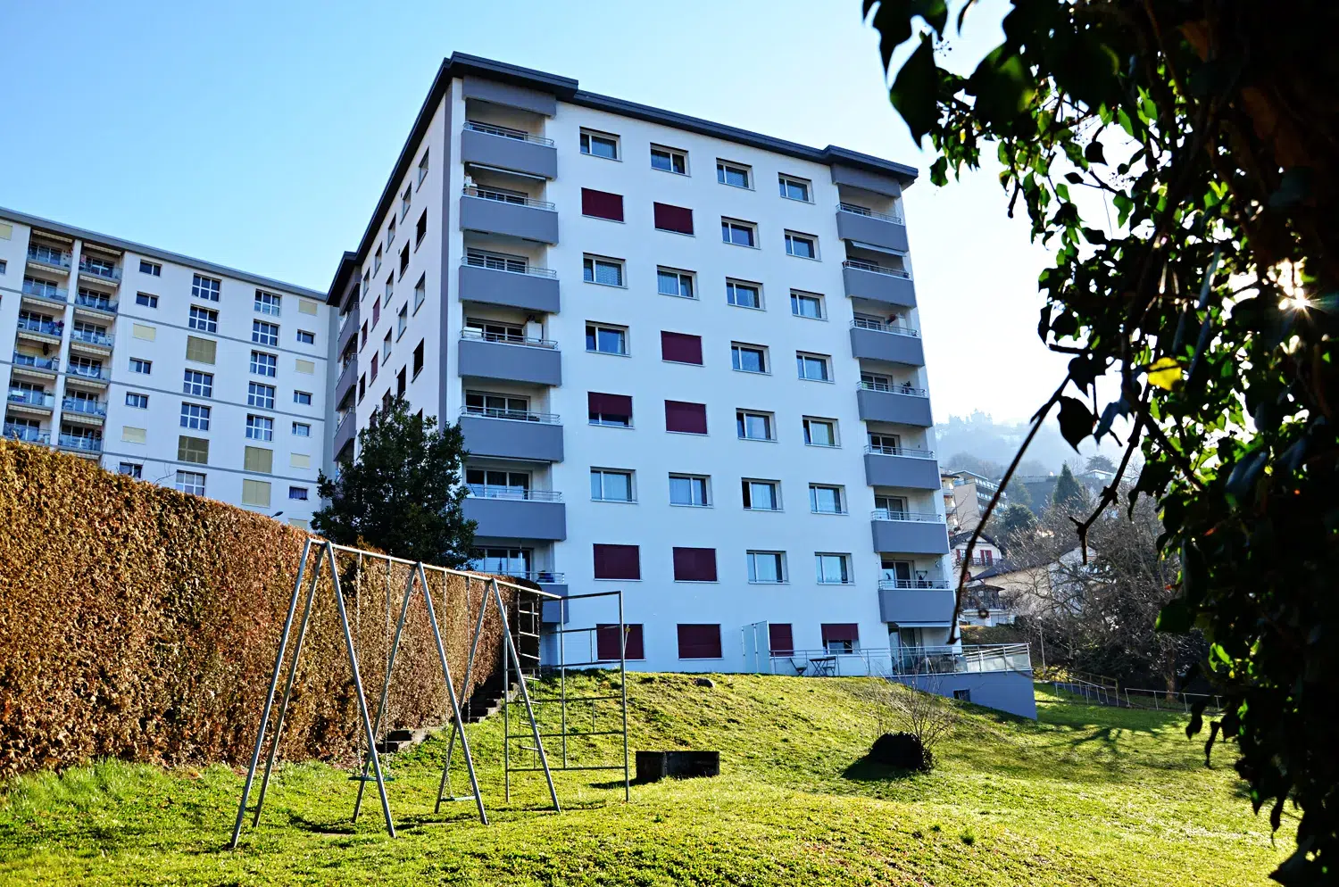 En 1969-1970, c’est un deuxième bâtiment qui fut construit sur les hauts de Montreux, dans un quartier dominant le lac. L’immeuble est édifié sur un bien-fonds propriété de la commune de Montreux cédé sous forme d’un droit distinct et permanent de superficie. Ce locatif a été construit en vingt mois sur des plans élaborés par l’architecte Félix Porcellana. Le toit plat, typique de cette époque, a été voulu par le plan de quartier.
